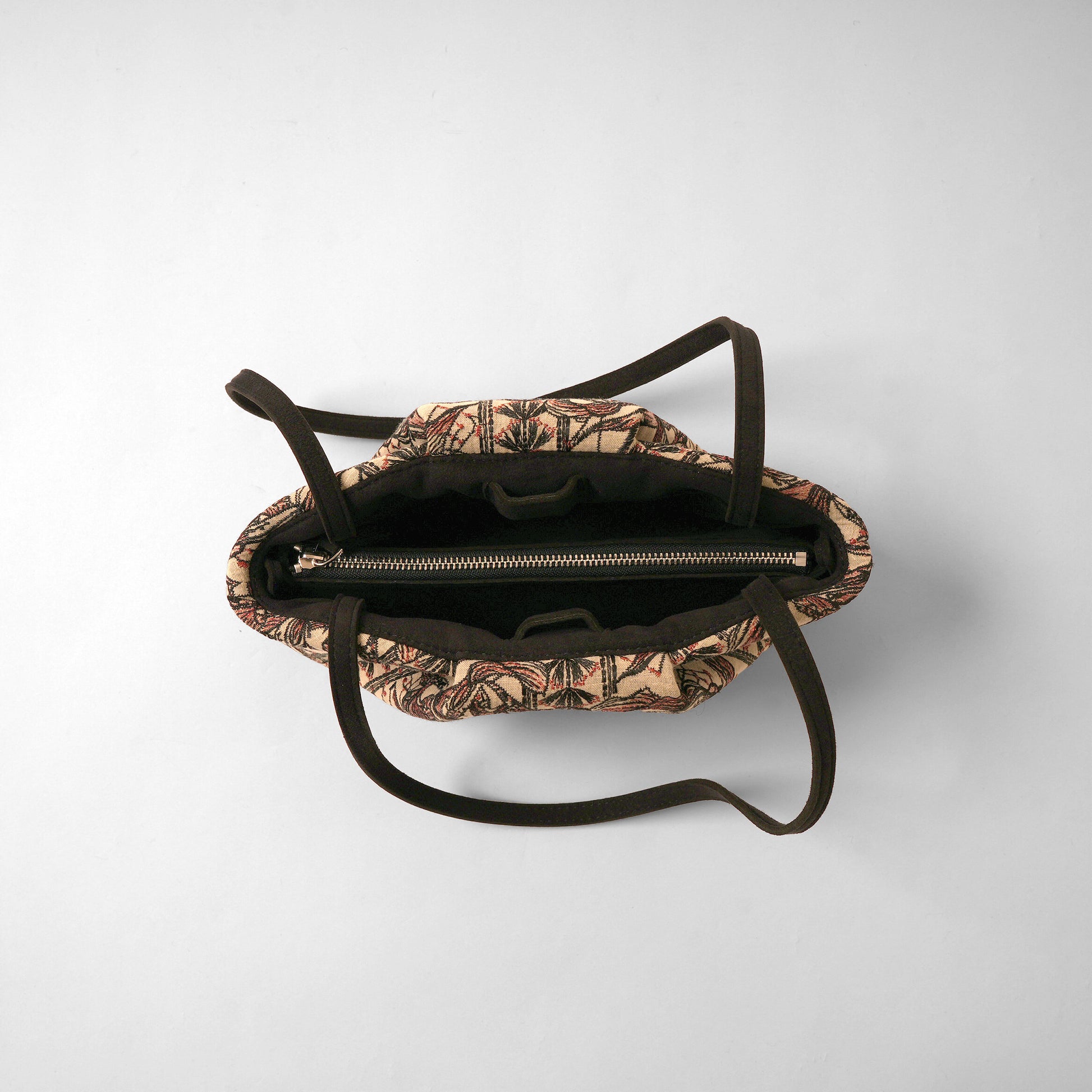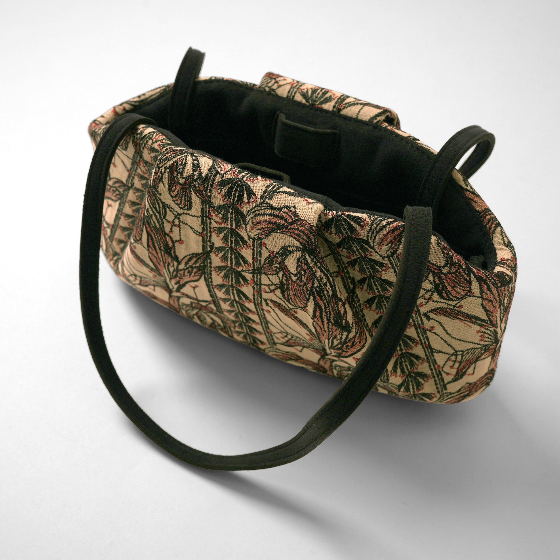 ・A clutch bag featuring a tuck design inspired by the “Fukura Suzume” obi knot style for furisode kimono
