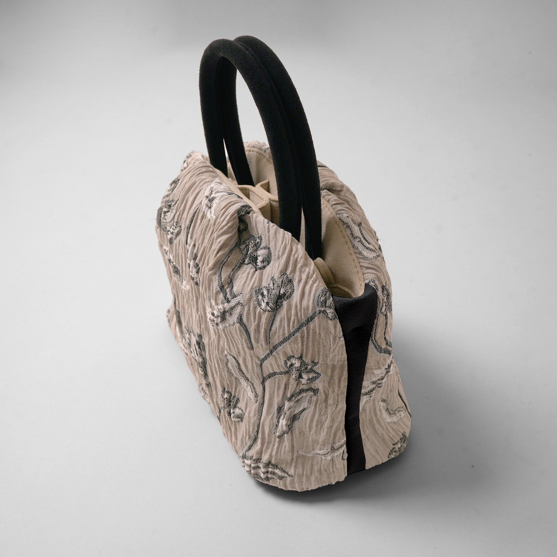 ・A Boston-style tote bag featuring a tuck design inspired by the “Fukura Suzume” obi knot for furisode kimono