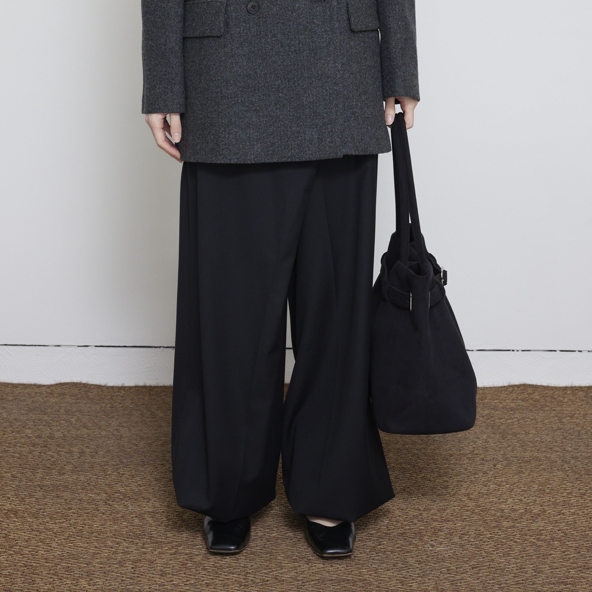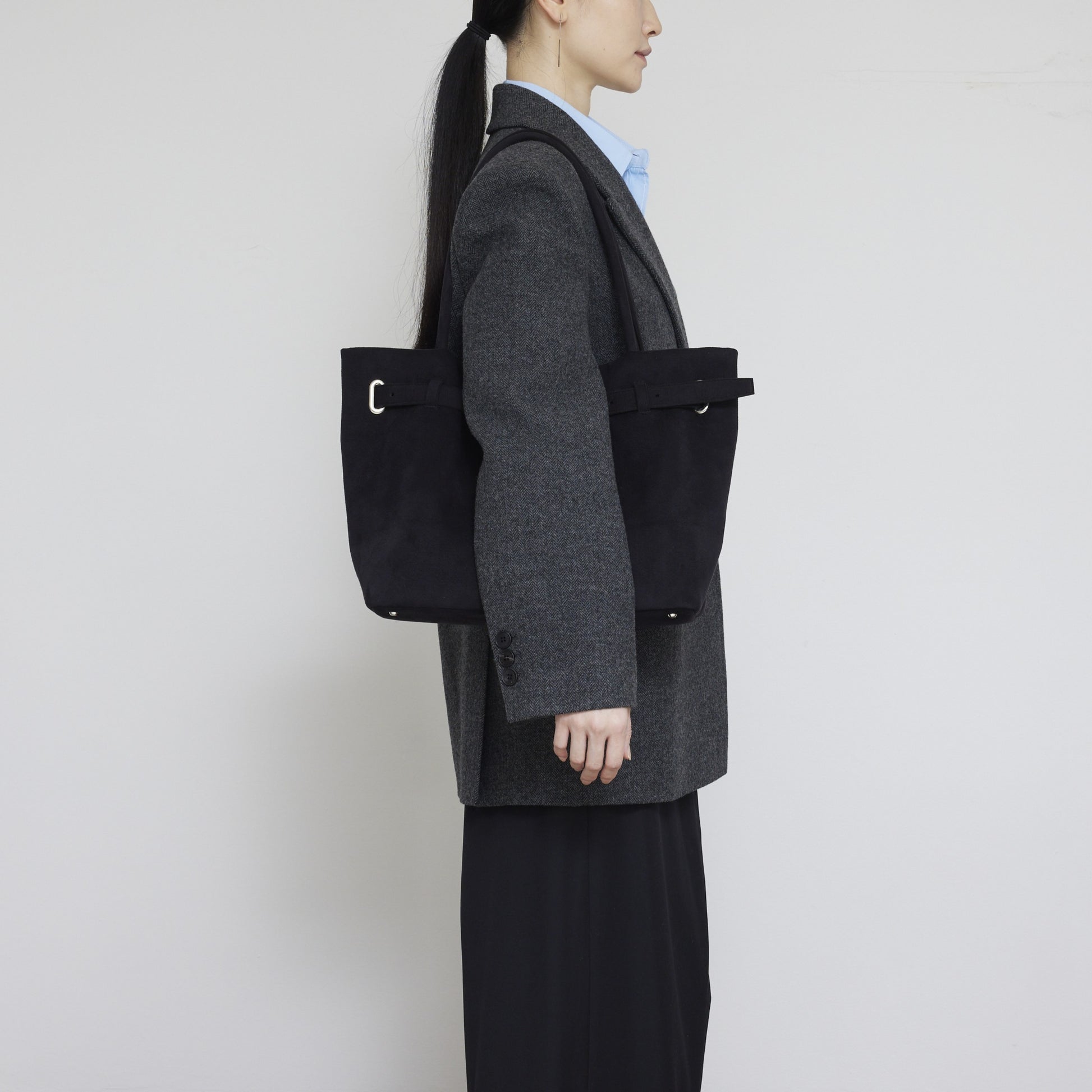 ・マグネットを使って中心を折り畳みベルトを絞ることで、ベーシックなトートバックから、蕾の様な形にシルエットを変えることが出来ます。