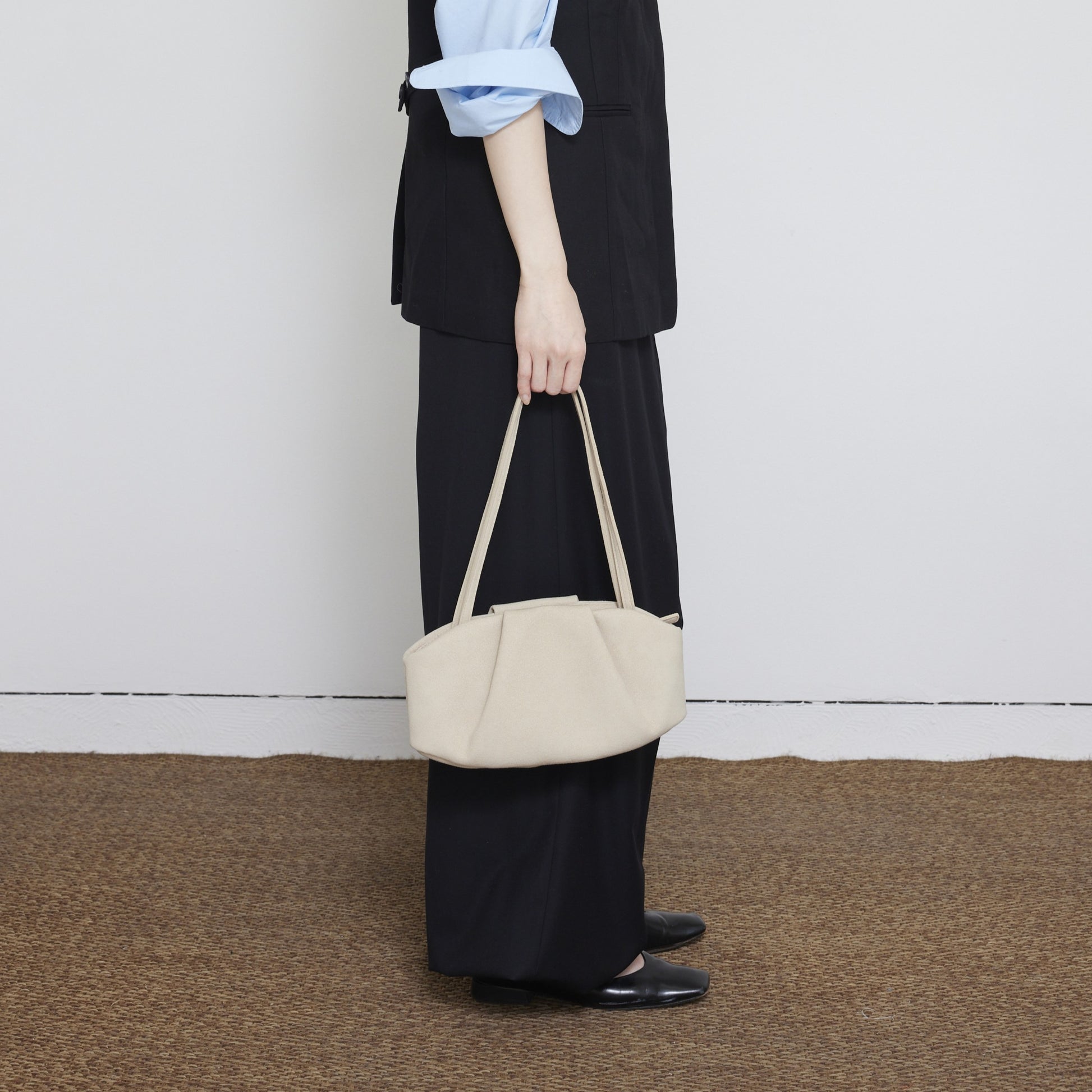 ・ふくら雀という振袖の帯の結びをヒントにしたタックのデザインが特徴のクラッチバッグ