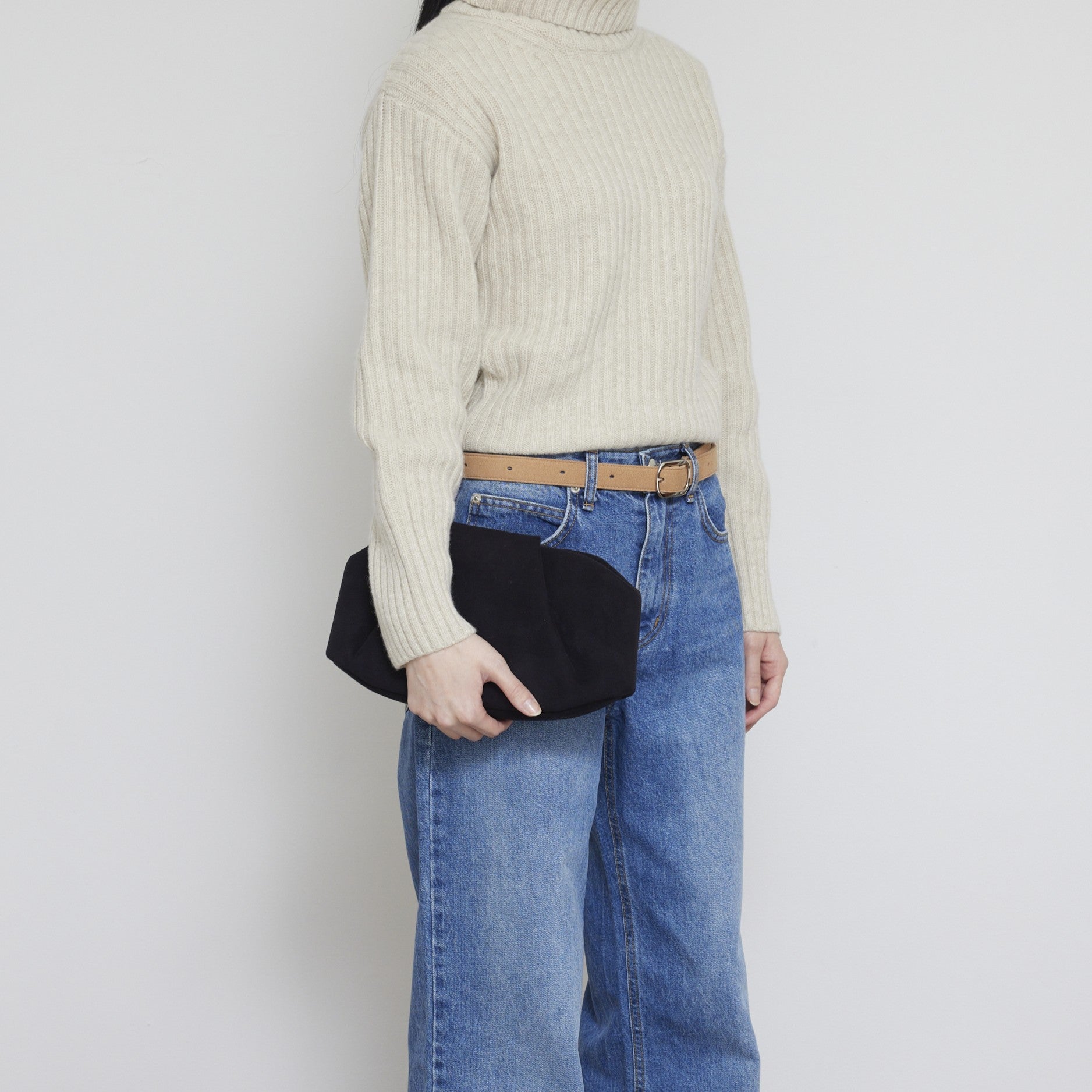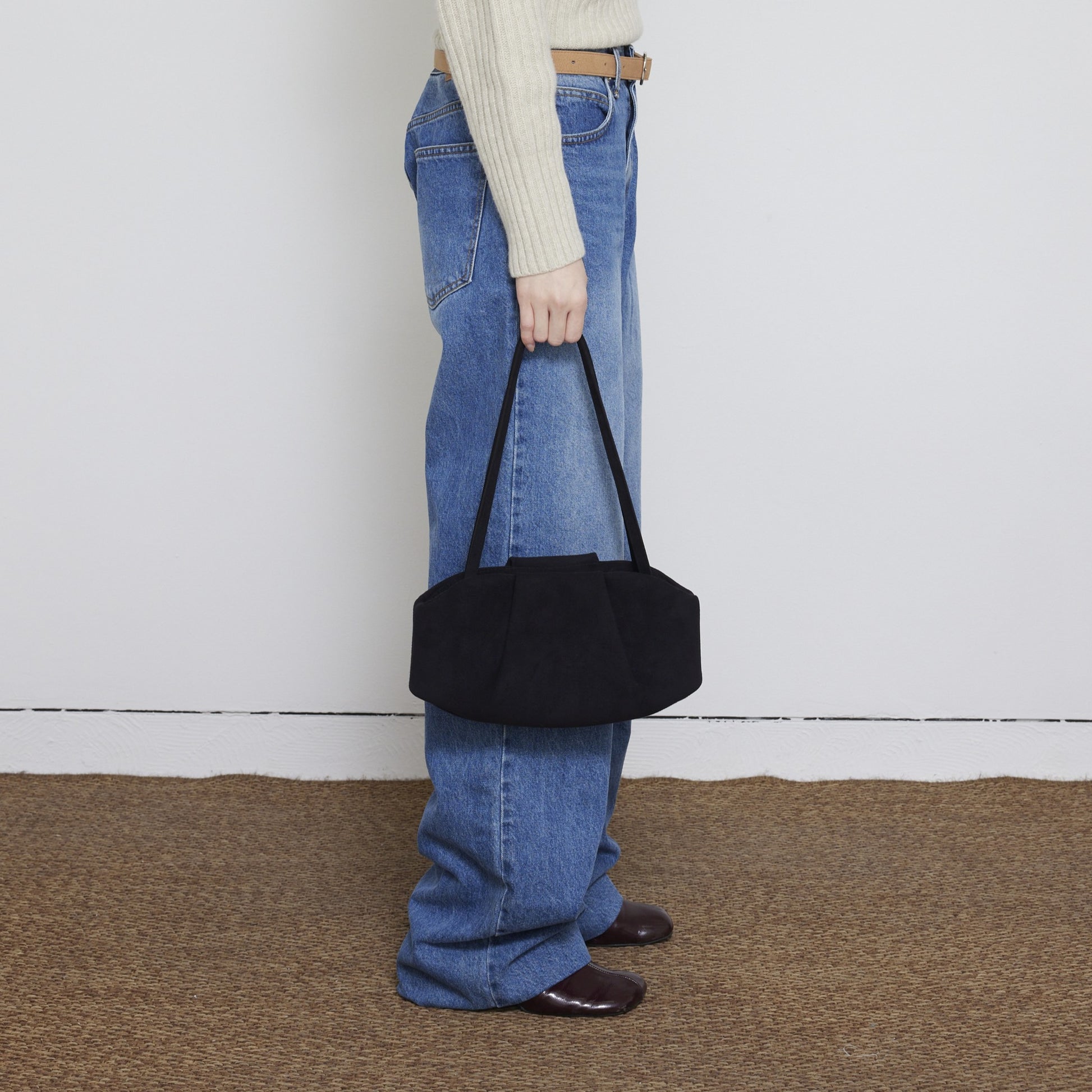 ・ふくら雀という振袖の帯の結びをヒントにしたタックのデザインが特徴のクラッチバッグ