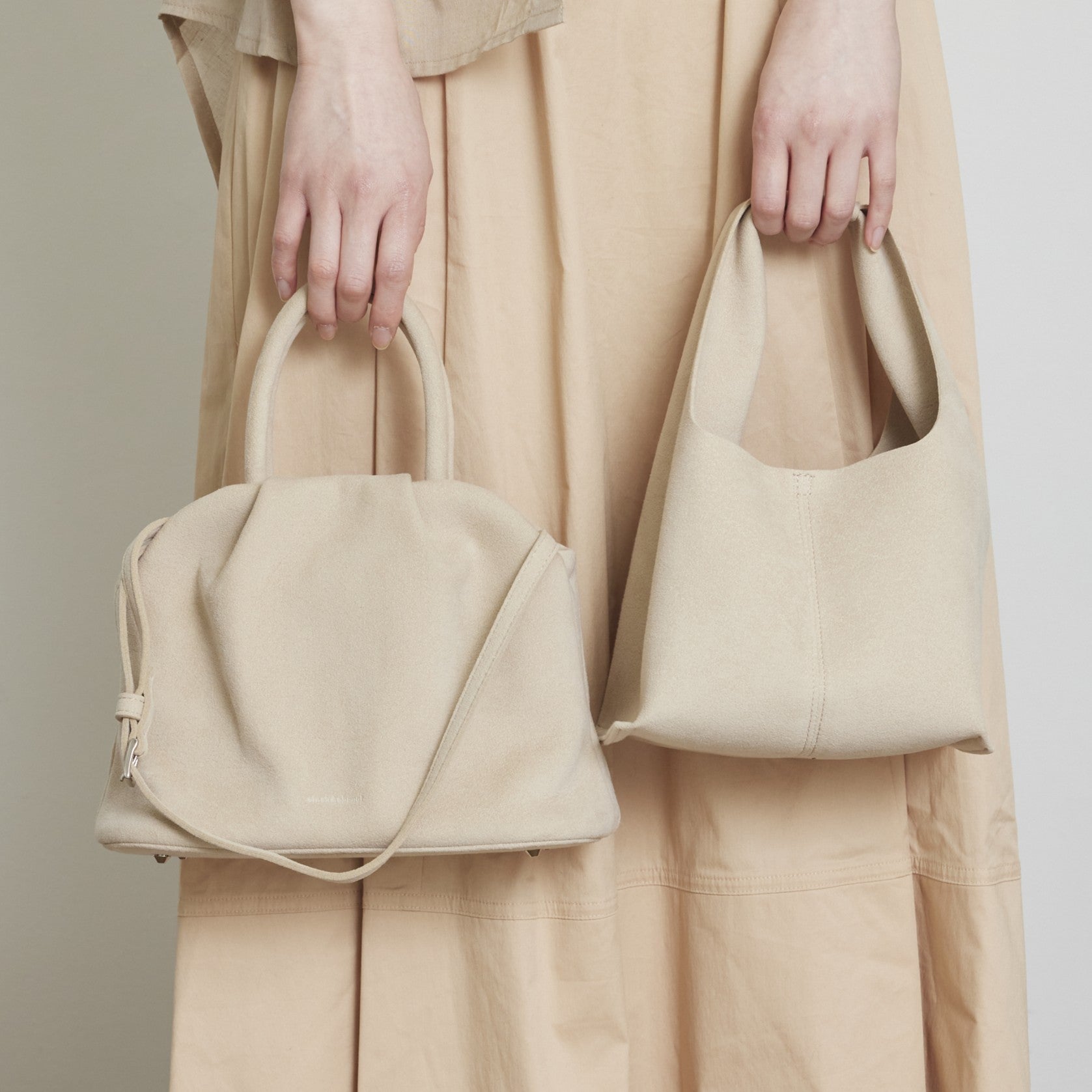 ・Ultrasuede®自体は、水洗いが可能な素材ですが、製品にする過程で、ファスナー等の金属や芯材を使用しているため、汚れた場合などは丸洗いではなく、濡れタオルなどで軽く拭いて頂く方法を推奨しています。
