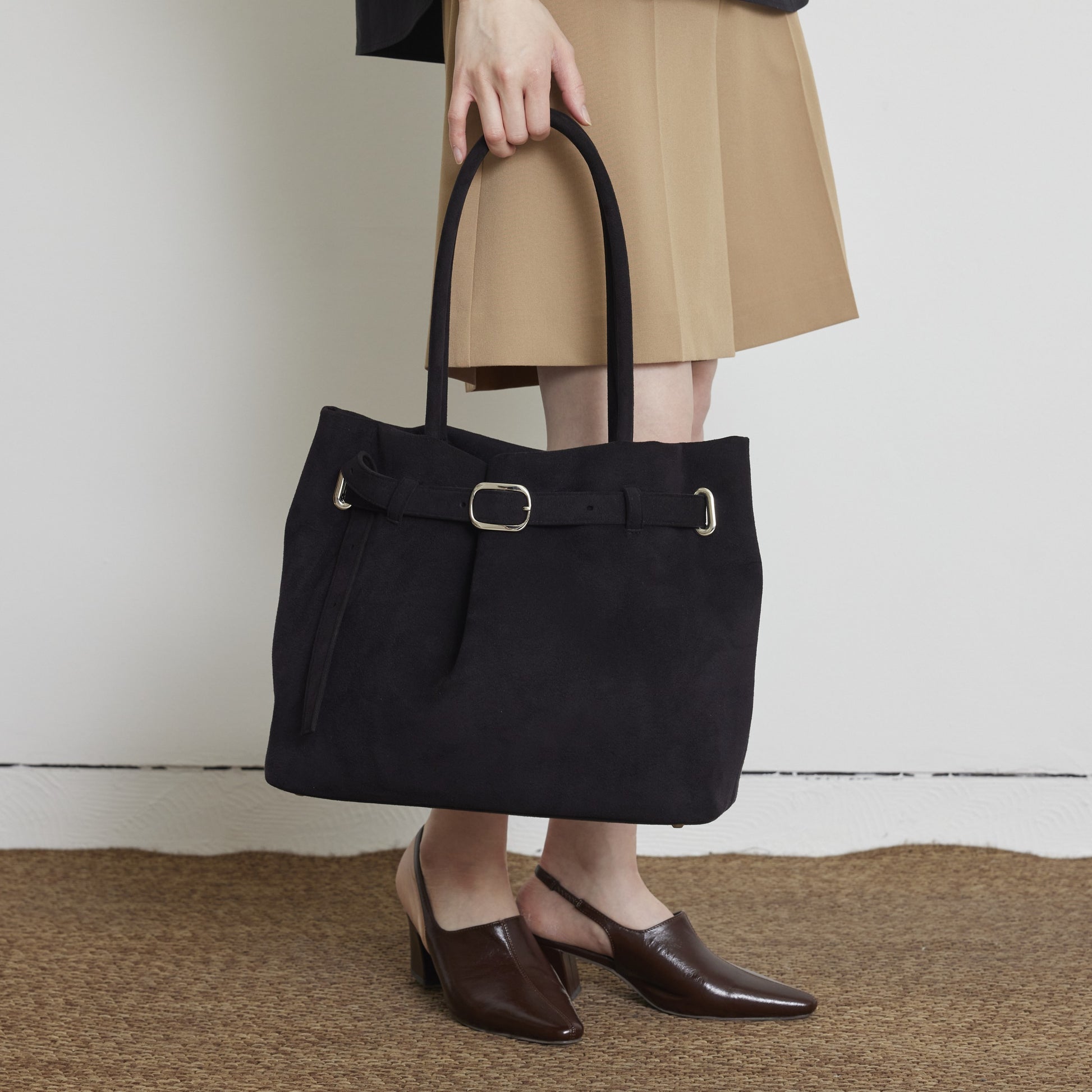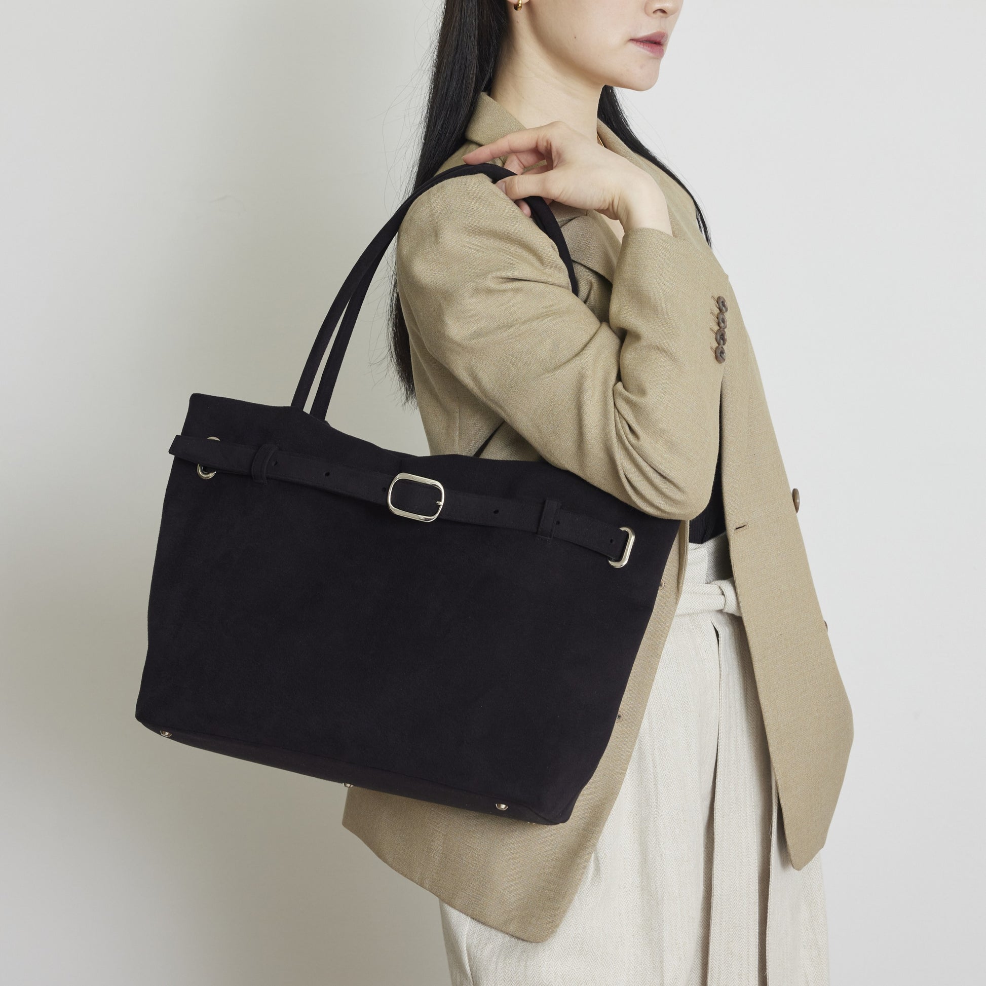 ・マグネットを使って中心を折り畳みベルトを絞ることで、ベーシックなトートバックから、蕾の様な形にシルエットを変えることが出来ます。