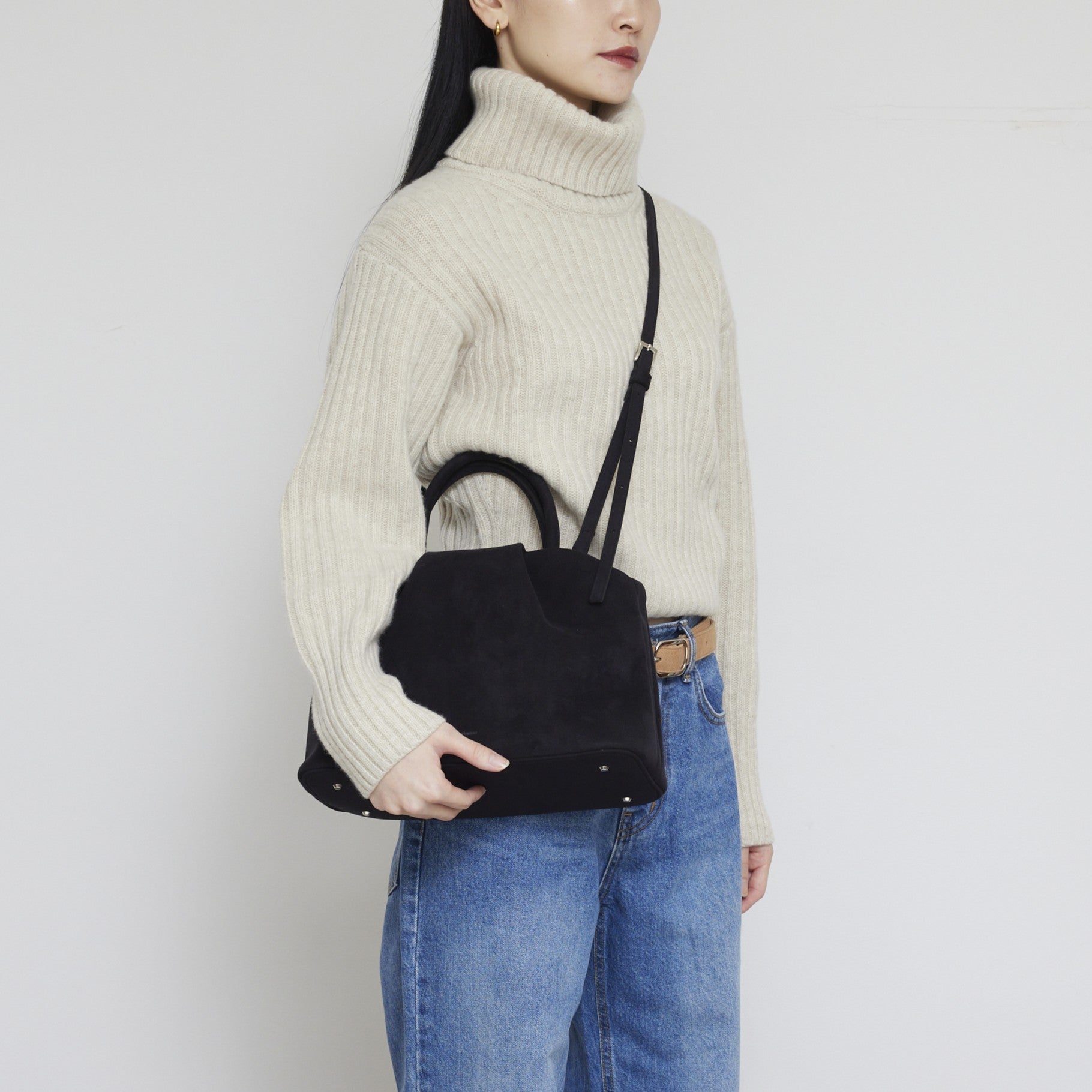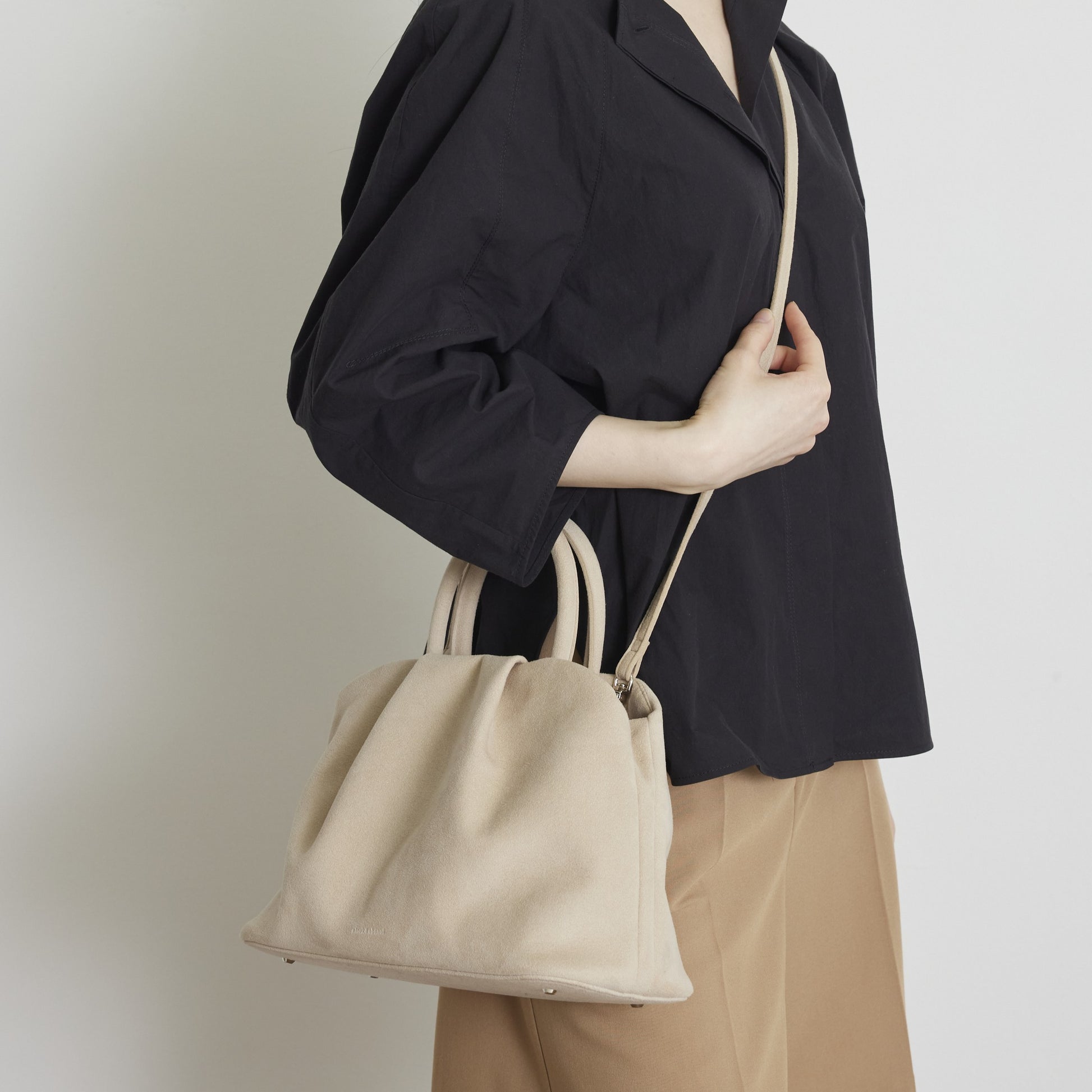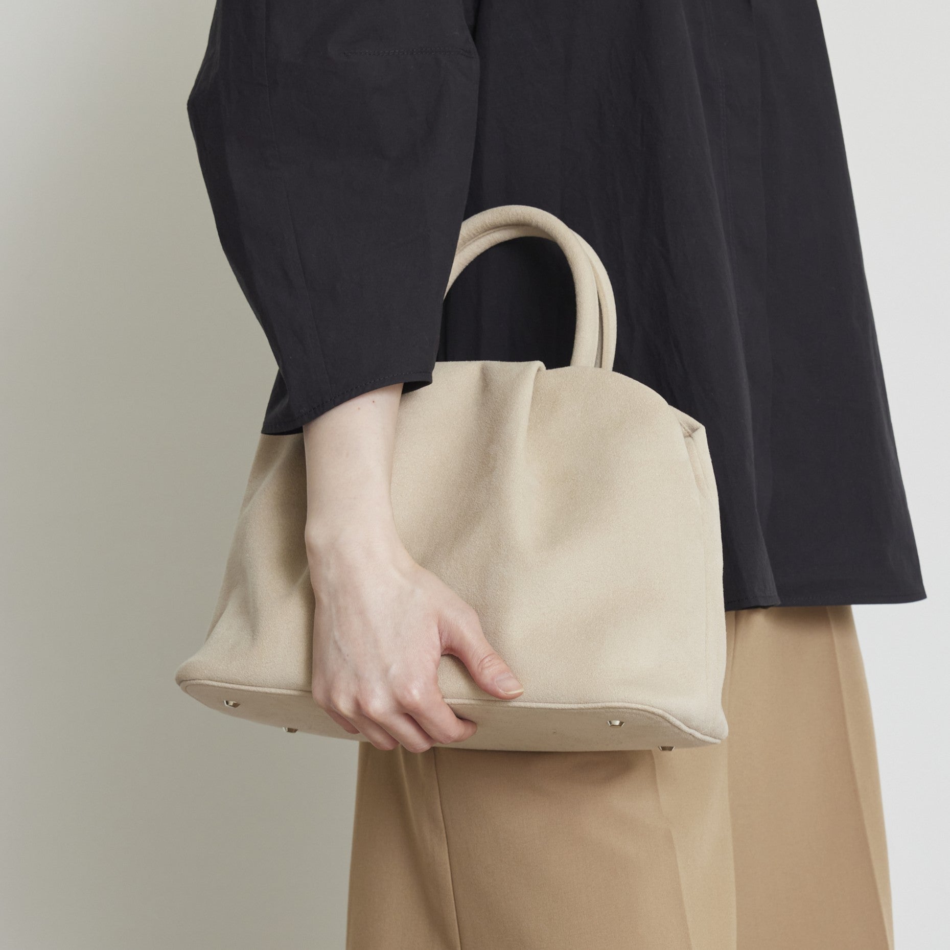 ・Ultrasuede®自体は、水洗いが可能な素材ですが、製品にする過程で、ファスナー等の金属や芯材を使用しているため、汚れた場合などは丸洗いではなく、濡れタオルなどで軽く拭いて頂く方法を推奨しています。