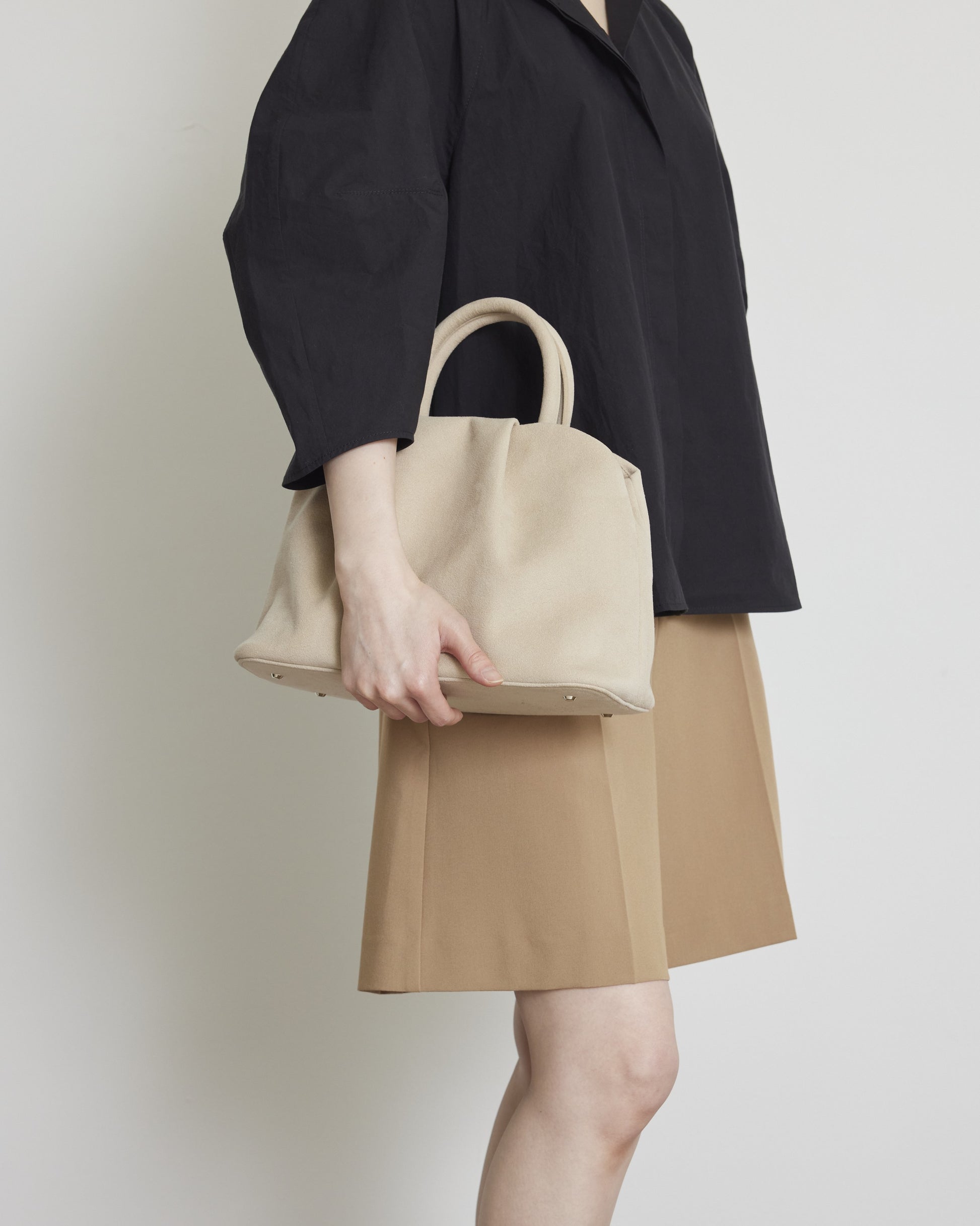・ふくら雀という振袖の帯の結びをヒントにしたタックのデザインが特徴のボストン型トートバッグ