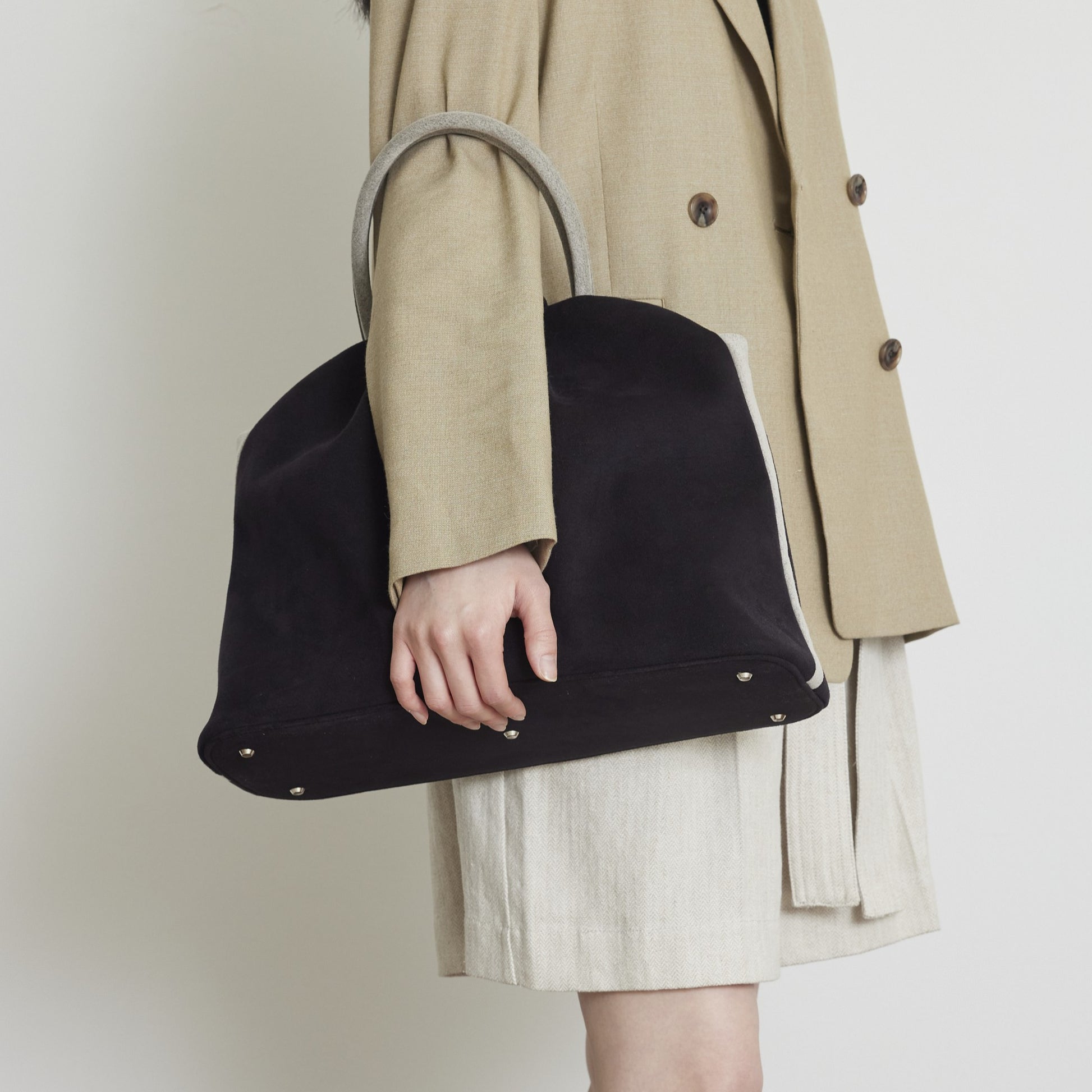 ・ふくら雀という振袖の帯の結びをヒントにしたタックのデザインが特徴のボストン型トートバッグ